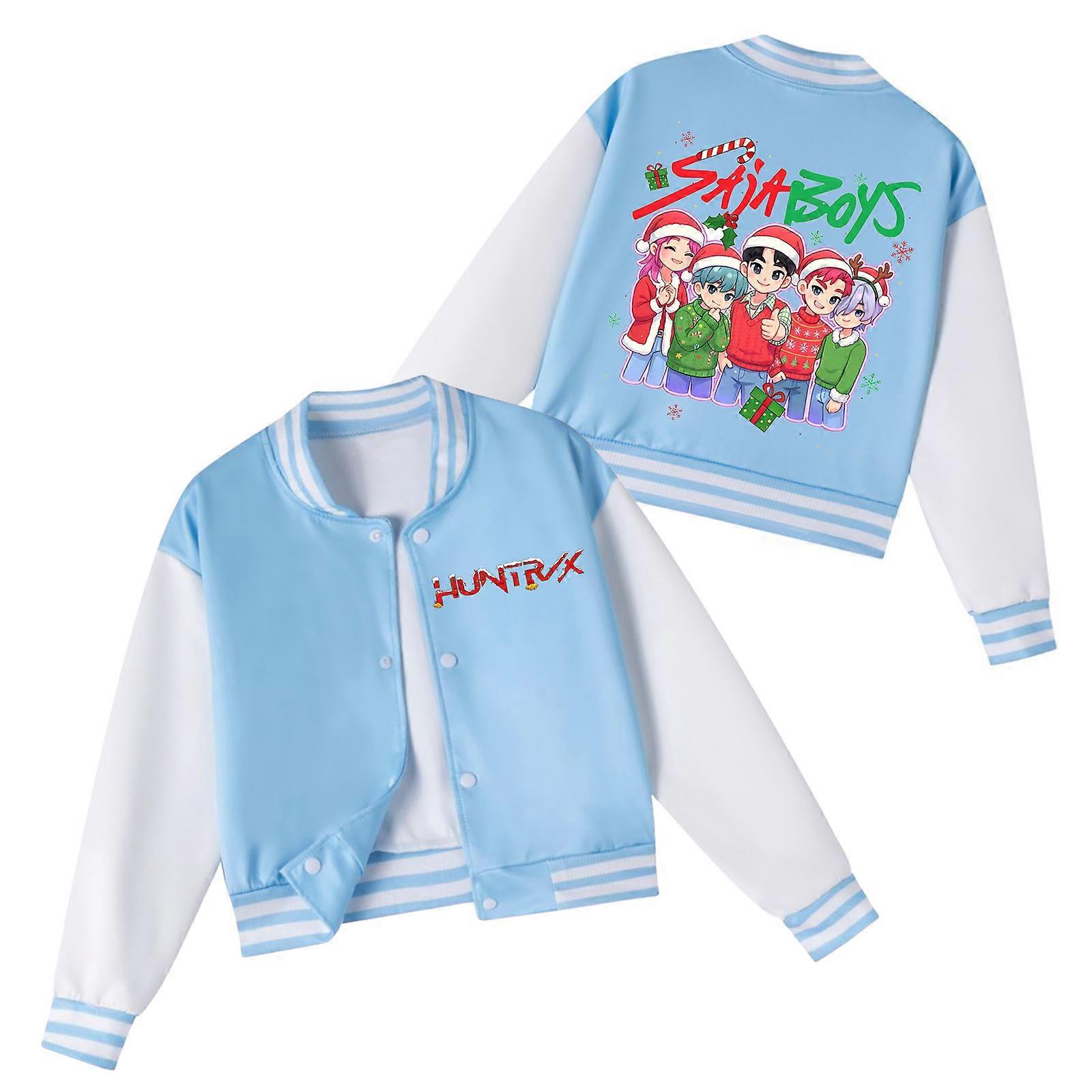 6007 Light Blue- Witch Hunting Group Spring And Autumn Children's Boys And Girls Short Baseball Uniform Christmas Style Csl6001-6010