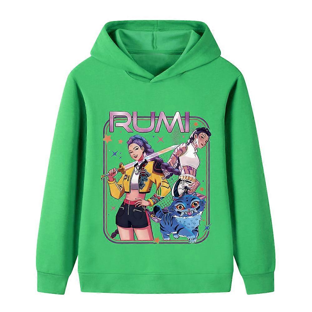 Green- Witch Hunting Group Printing Pattern Medium And Large Children Boys And Girls Hoodie Sweater B12 49
