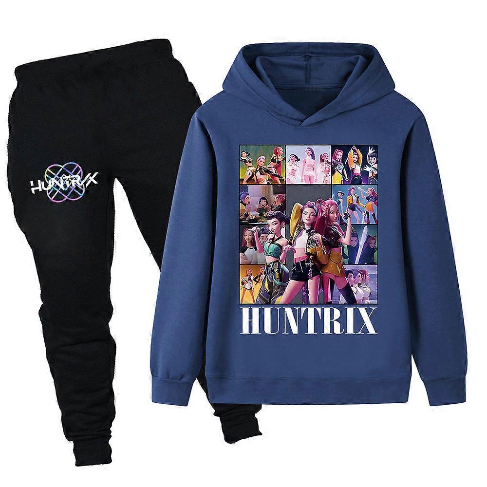 Navy Blue- Witch Hunt Printed Children's Set, Kids' Hoodie And Sweatshirt Set Pb1223