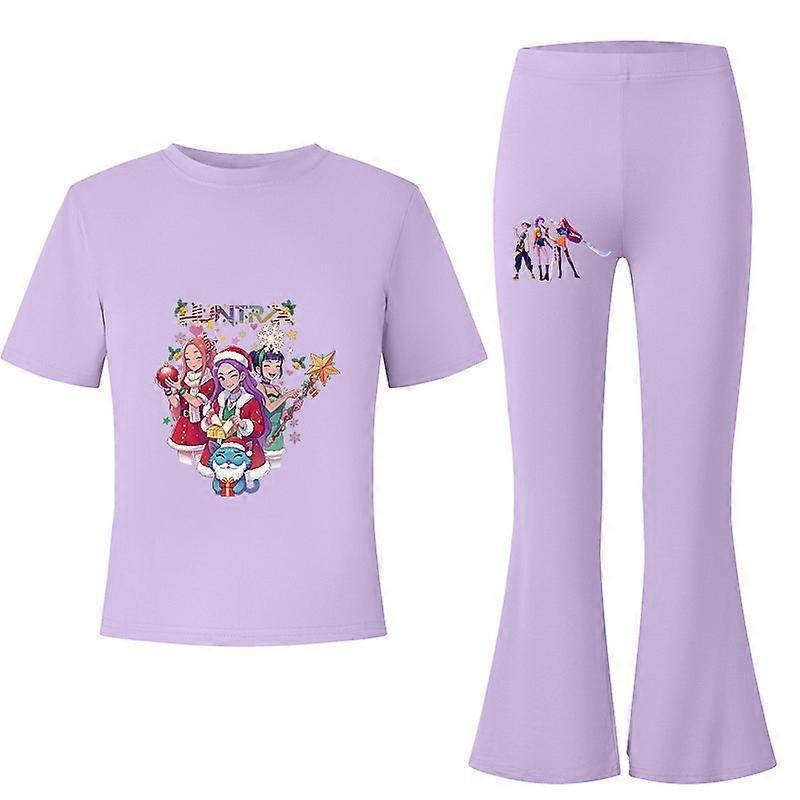 Flower Type 2-Purple- Witch Hunter's Big Kids Summer Short-Sleeved T-Shirt + Flared Long Pants Fashionable Casual Set