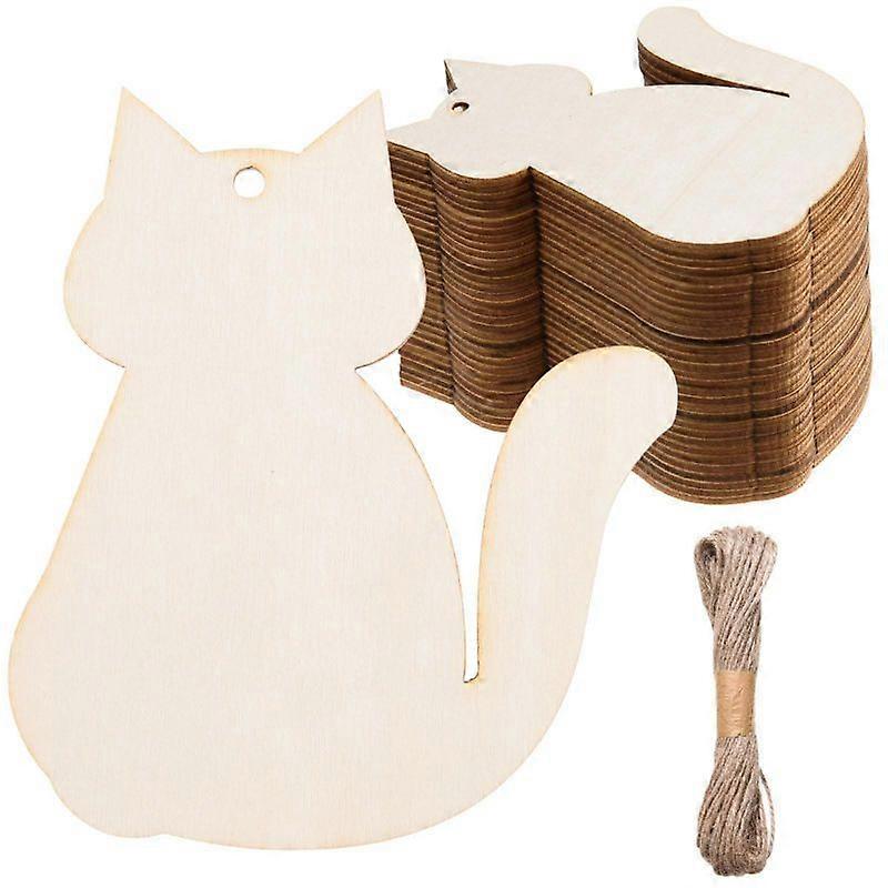 40pcs Unfinished Wood Cat Cutouts DIY Craft Tags Decorative Animal Shapes for