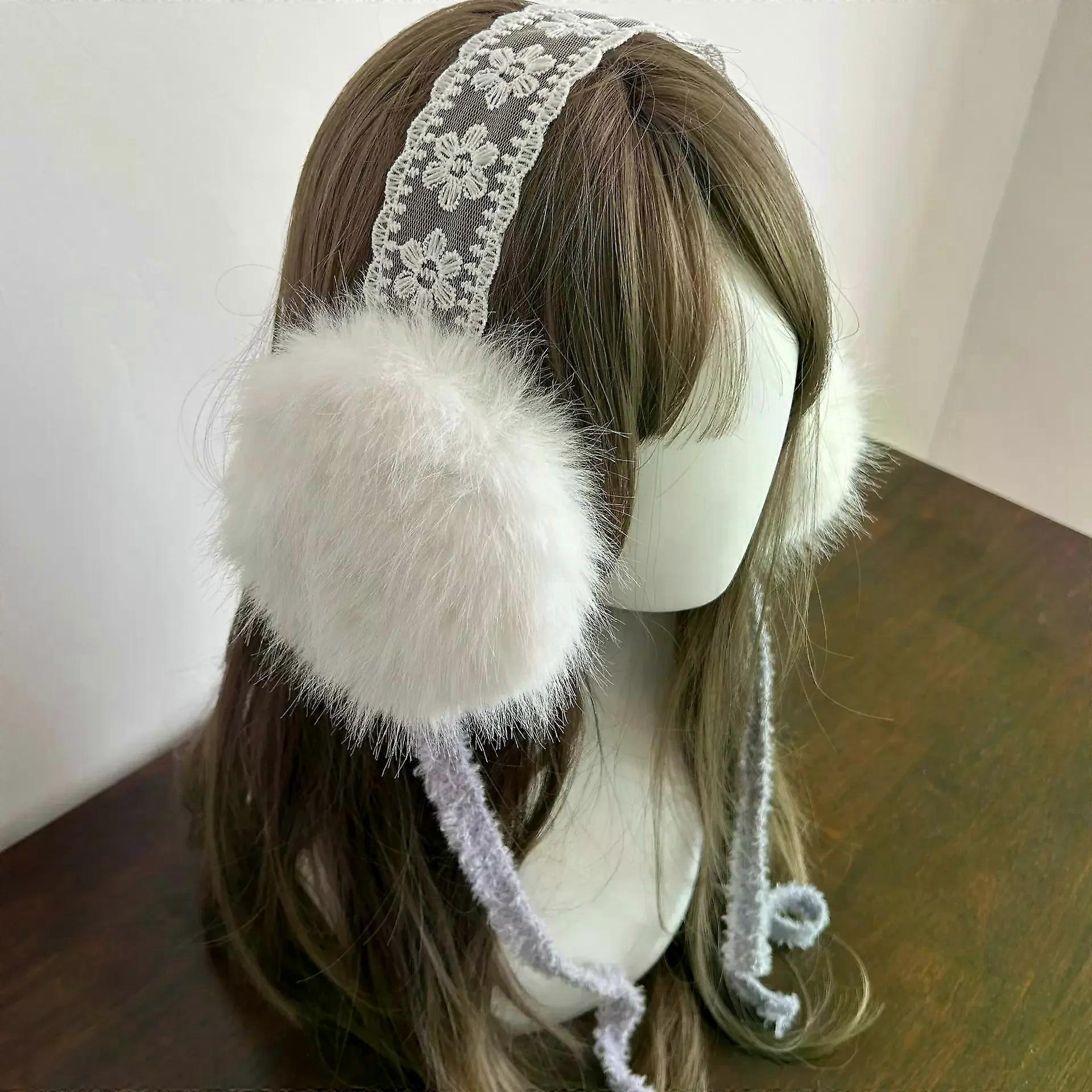 Lace Bow Earmuffs Winter Warm Thickened Women Kawaii Japanese JK Tape Ear Protection hairband Cycling Earbags Y2k Accessories