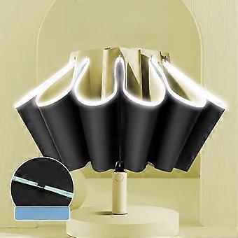 Large Windproof Reflective Striped Reverse Automatic Umbrella for Men and Women, 20Rib Umbrella, Sun Rain Luxury Business Car Tr