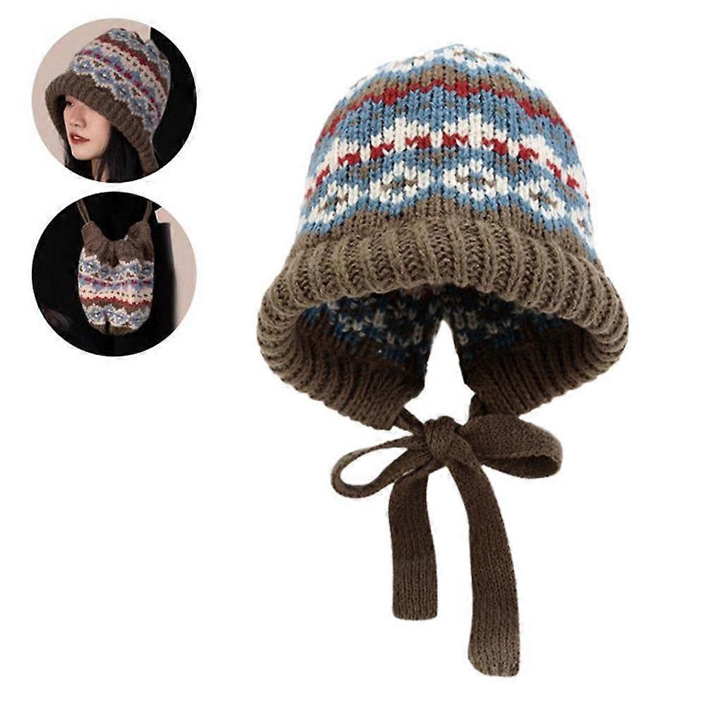 Fair Isle Knitted Balaclava Hat for Women, Winter Warm Hat with Ear Protection, Retro Fisherman Beanie, Trendy Yarn Stocking Cap