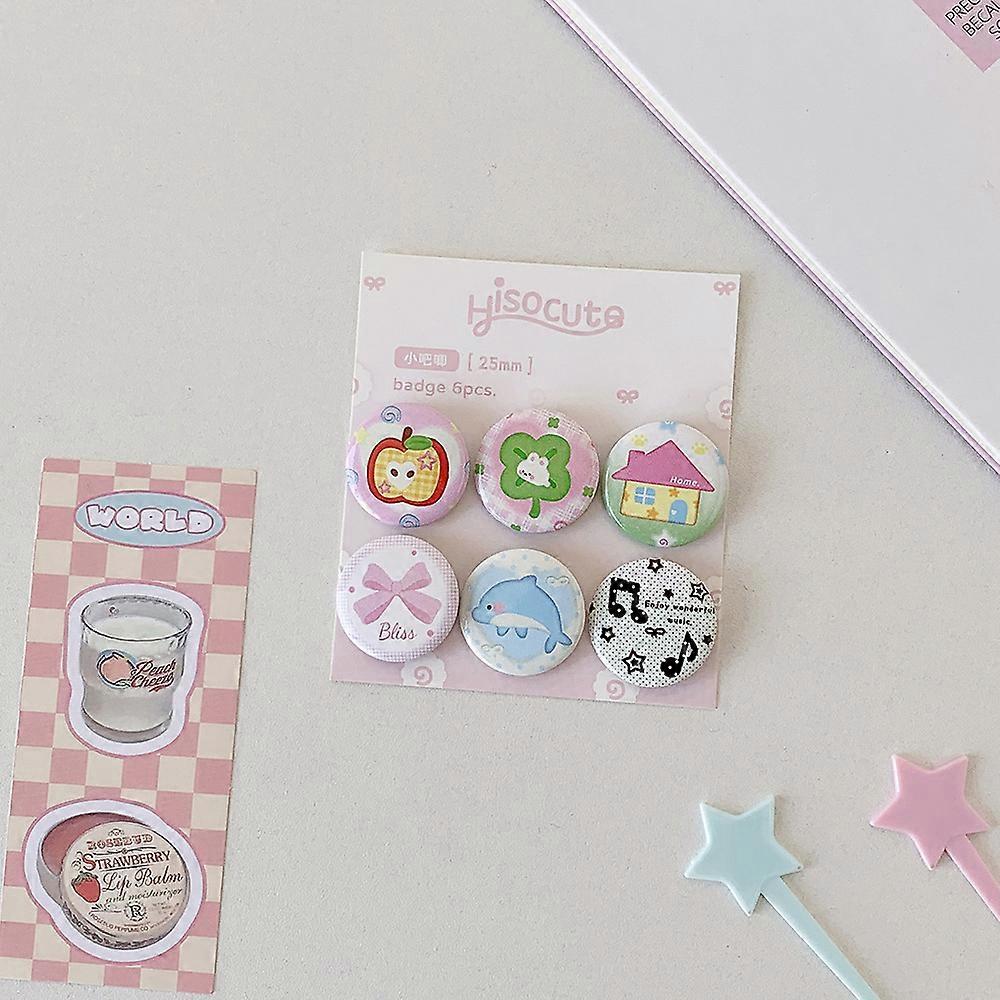 6pcs Cartoon Cute 25mm Mini Button Badge Kawaii Girls Kids Backpack Pencil Bag Diy Decorative Brooch Pins Jewelry Gifts