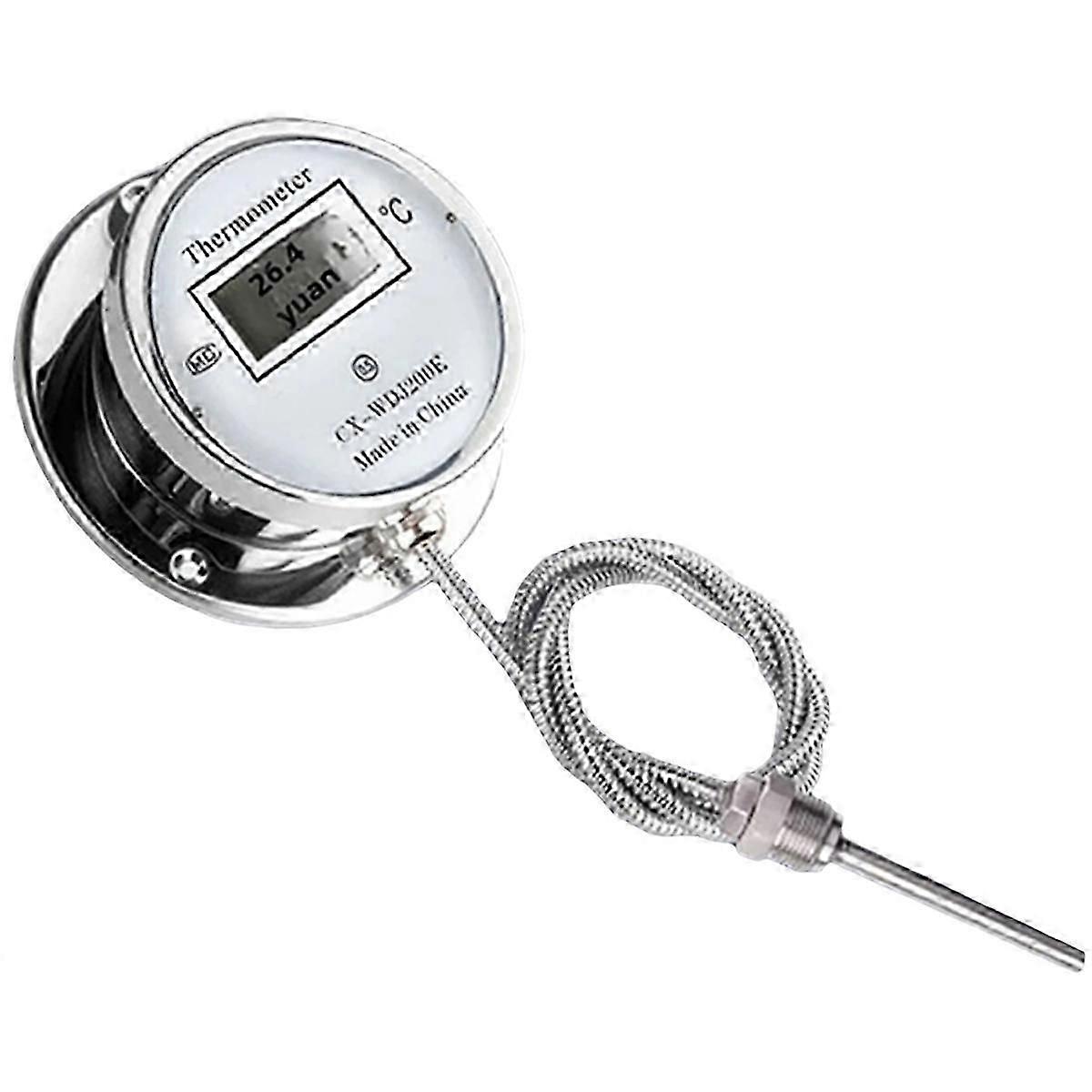 FEATURES Made entirely of stainless steel, durable and anti-corrosion. High-precision measurement with a 0.1°C accuracy and rapid response. Double-layer stainless steel signal wire, waterproof and heat-resistant. Dial Diameter: 14cm Temperature Range: -50°C -300°C Display: LCD Probe Length: 100mm Probe Diameter: 10mm Material: Stainless Steel Connection Type: M27x2 Threaded APPLICATION Industrial temperature measurement. Agricultural applications. Pipeline equipment. Aquaculture environments. Material: Stainless steel Color: As shown Package Contents: 1 x Thermometer 1 x Threaded Probe 1 x Probe Wire Only the above package content, other products are not included. Note: Light reflection and different displays may cause the color of the item in the picture a little different from the real thing. The measurement allowed error is +/- 1-3cm.