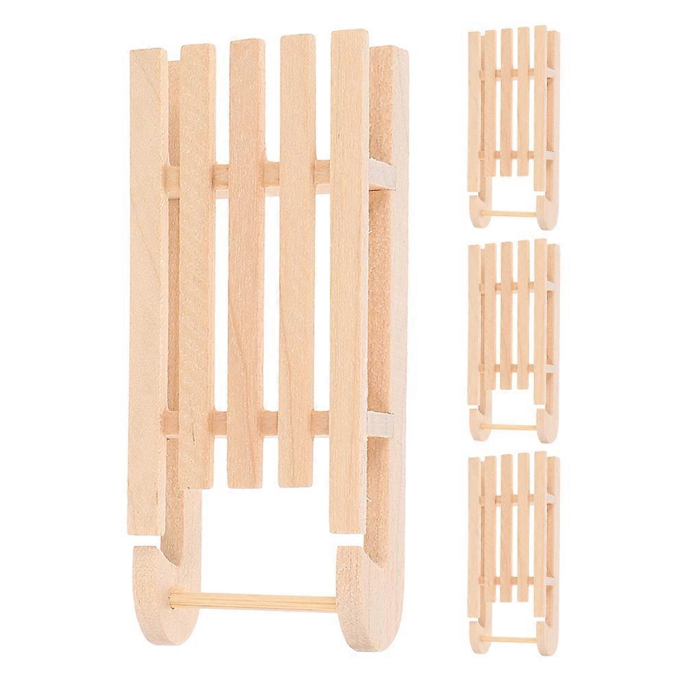 DIY Wooden Sleigh for Doll House Christmas Scene Decor Paintable Miniature Ornament 4 Pieces