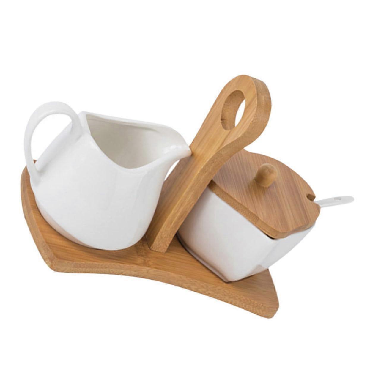 Ceramic Sugar Bowl with Lid and Spoon, White Porcelain Kitchen Storage Jar, Elegant Countertop Design