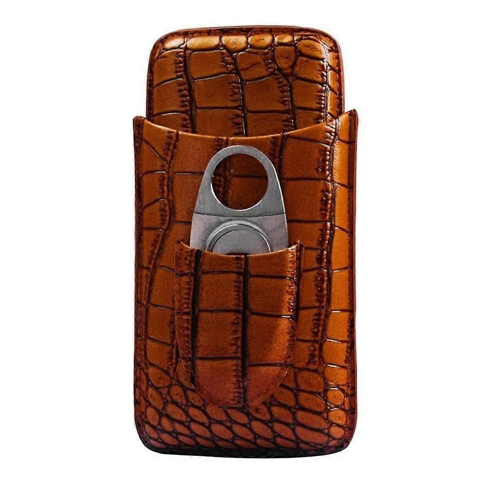 Leather Cigar Travel Case with Humidor for 3 Cigars, Coffee, Humidity Control, Gift for Men