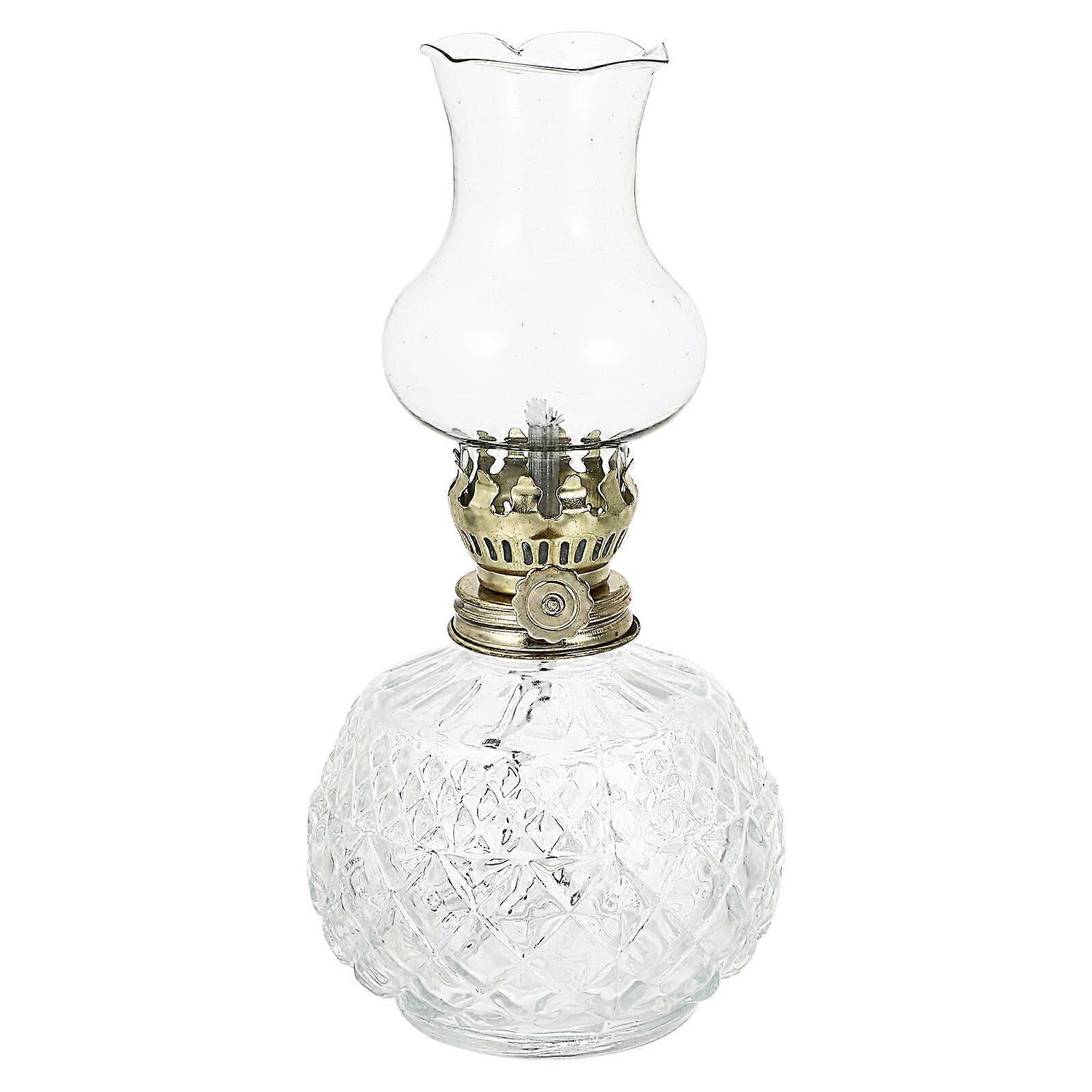 Vintage Transparent Glass Kerosene Lamp with Windproof Cover for Home Decor and Emergency Lighting