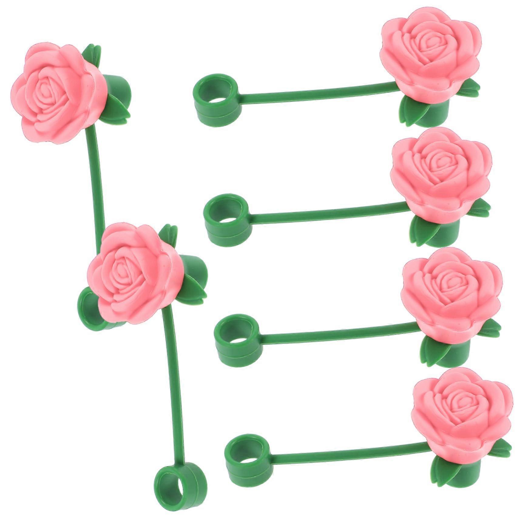 6pcs Silicone Flower Straw Caps for Tumblers, Wedding Party Drink Lid Covers, Pink