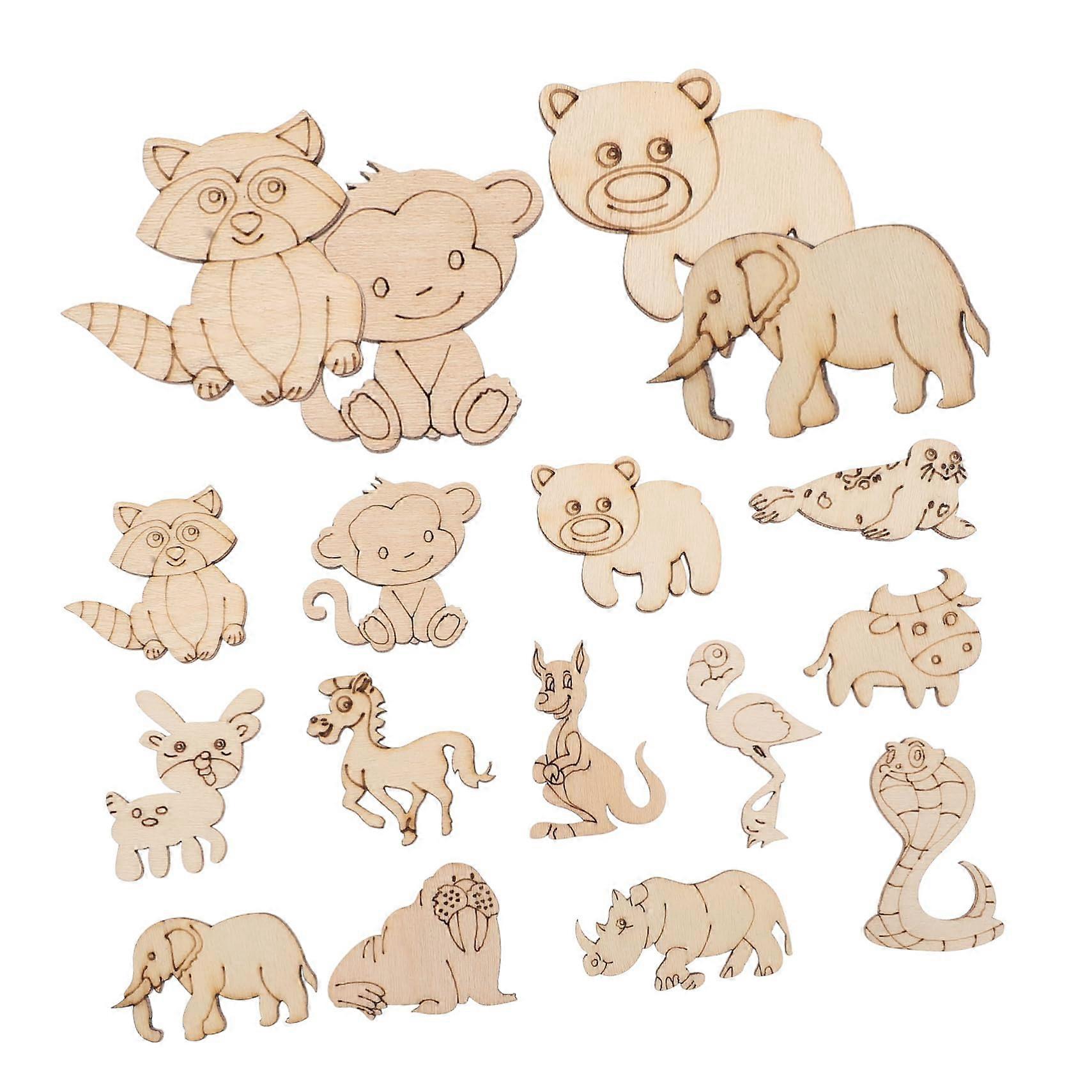 50pcs Animal Wooden Cutouts Unfinished Log Slices for DIY Home Crafts and Rustic Decorations