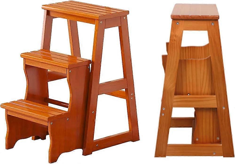 Solid Wood Folding Ladder Chair 3 Step Convertible Step Stool for Home Kitchen Office 64cm Walnut