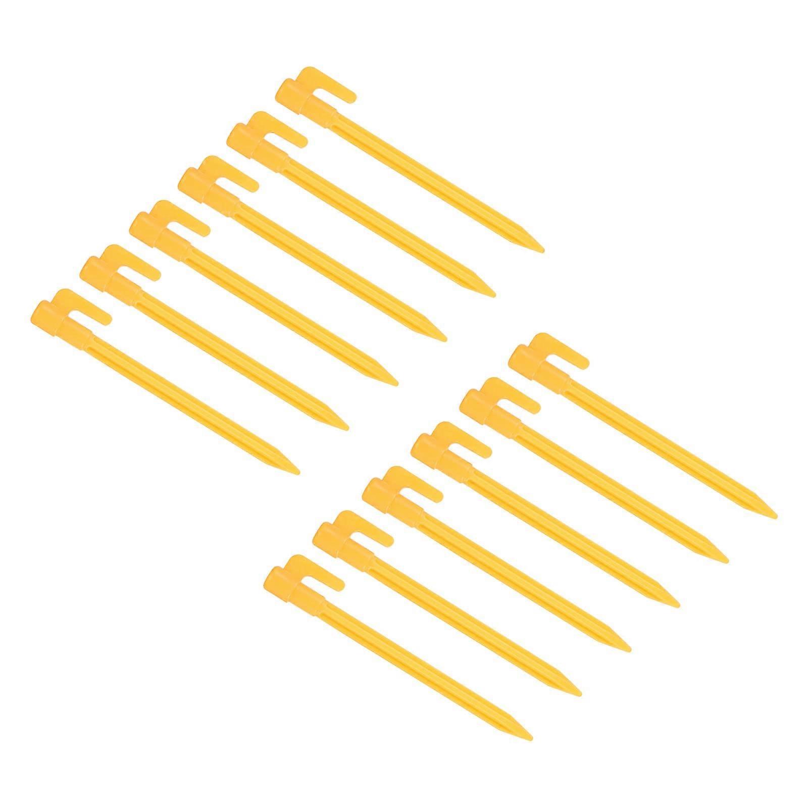 12 Pack Plastic Tent Stakes with Hook, Lightweight Yellow Ground Pegs for Camping, Hiking, Beach 14.5cm