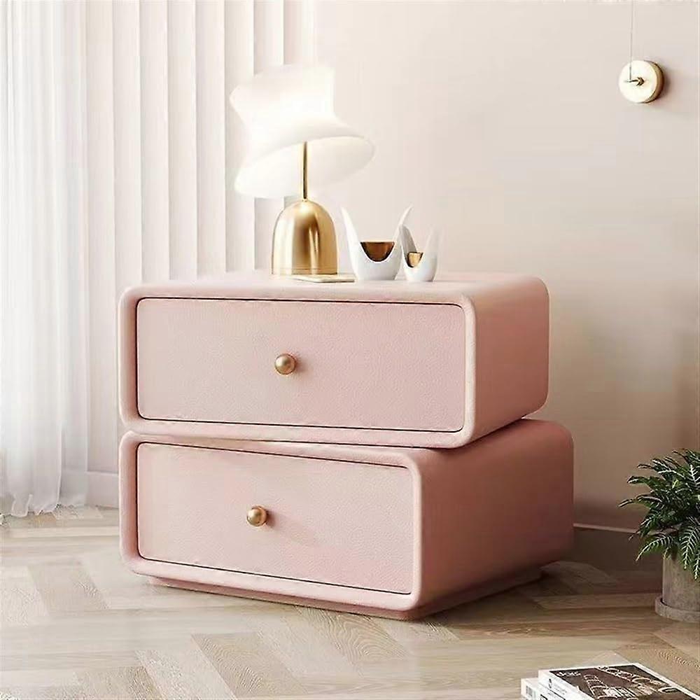 Nightstand with 2 Drawers and 360° Rotating for Bedroom or Living Room, Pink, 50x40x48cm