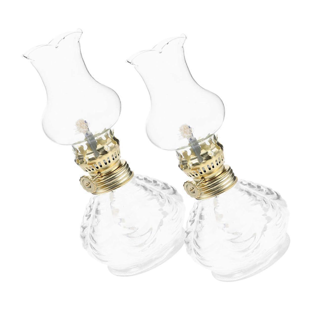 2pcs Vintage Oil Lamp Kerosene Lanterns with Glass Hurricane Shade for Home Decor and Emergency Lighting