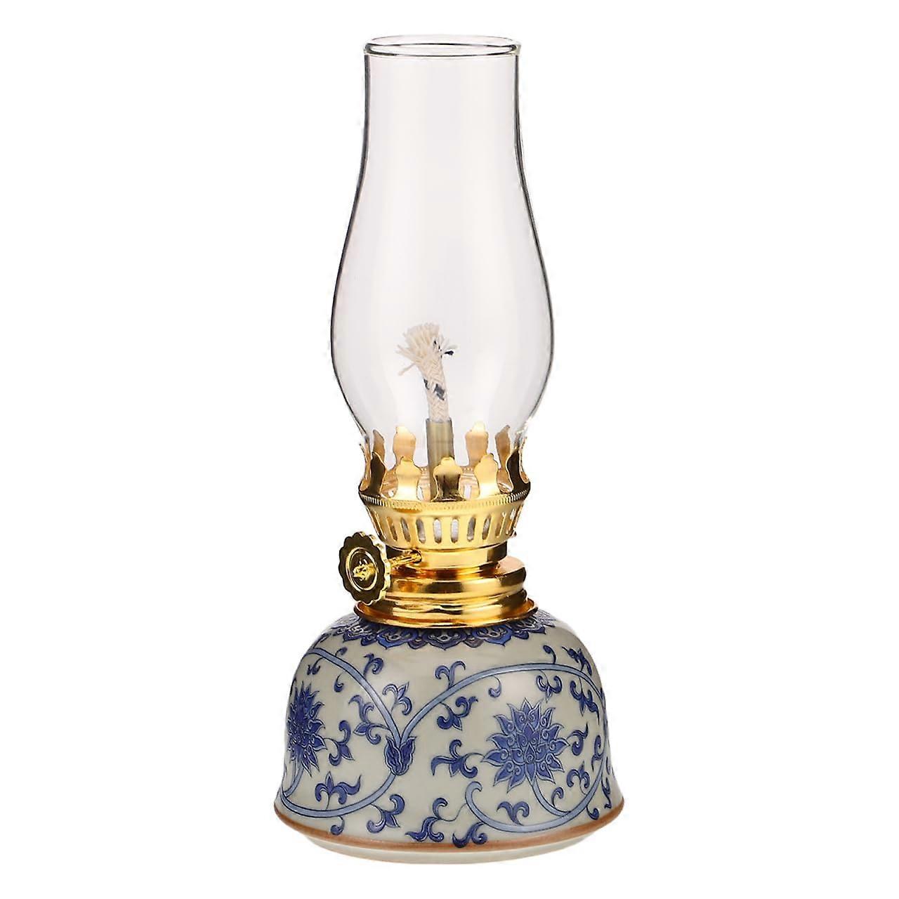 Ceramic Oil Lamp with Elegant Porcelain Design Vintage Kerosene Lantern Adjustable Wick for Home Decor