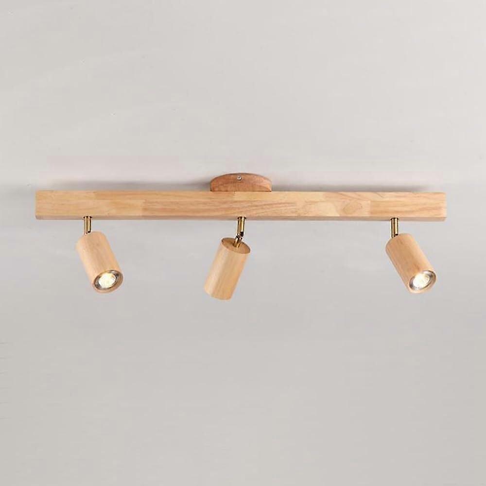 LED Track Lighting with 3 Rotatable Wooden Heads, Adjustable Ceiling Spotlights for Kitchen and Living Room