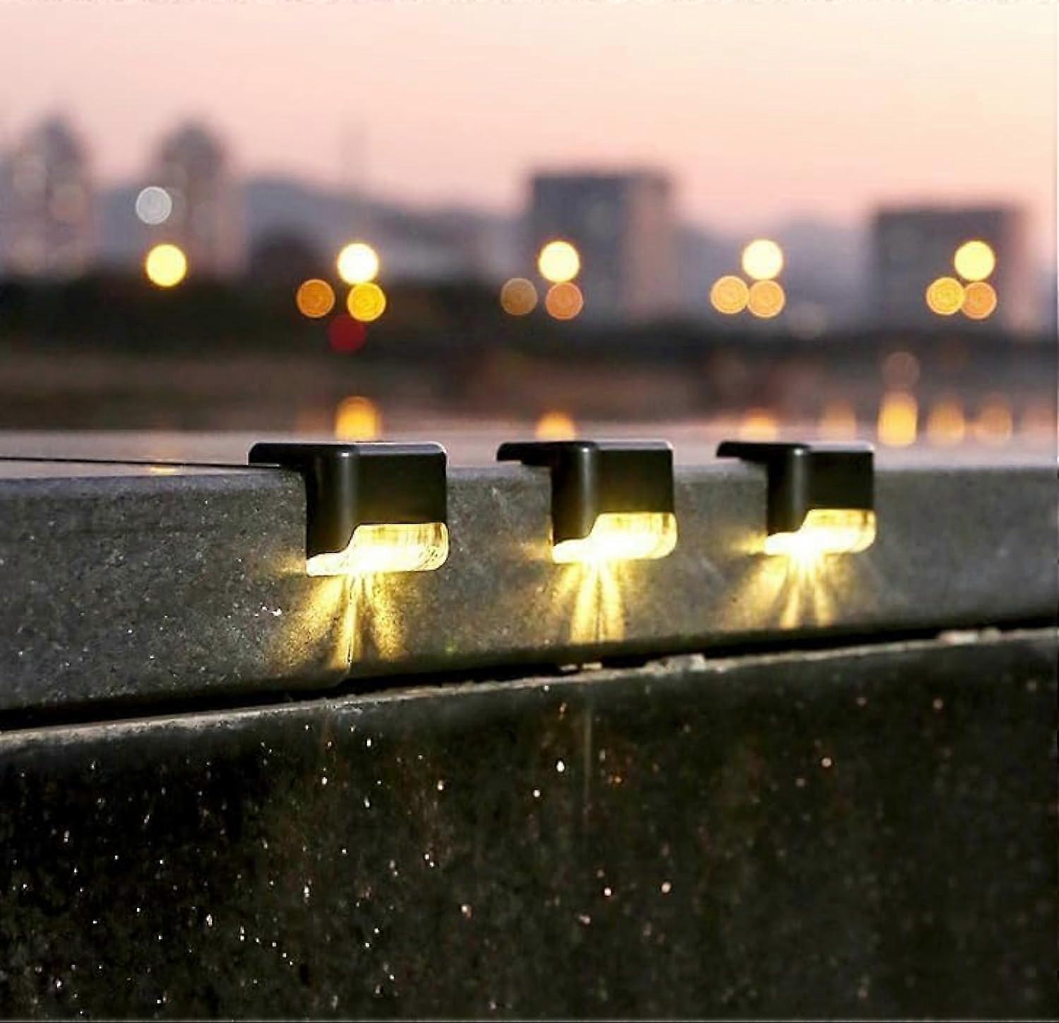 16 PCS Waterproof Solar Deck Lights Outdoor with Dusk to Dawn Sensor, Warm White LED Step Lighting