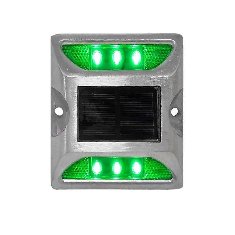 Solar Road Stud Light IP68 Waterproof Cast Aluminum LED for Driveway Garden Pathway Dock Green Flashing