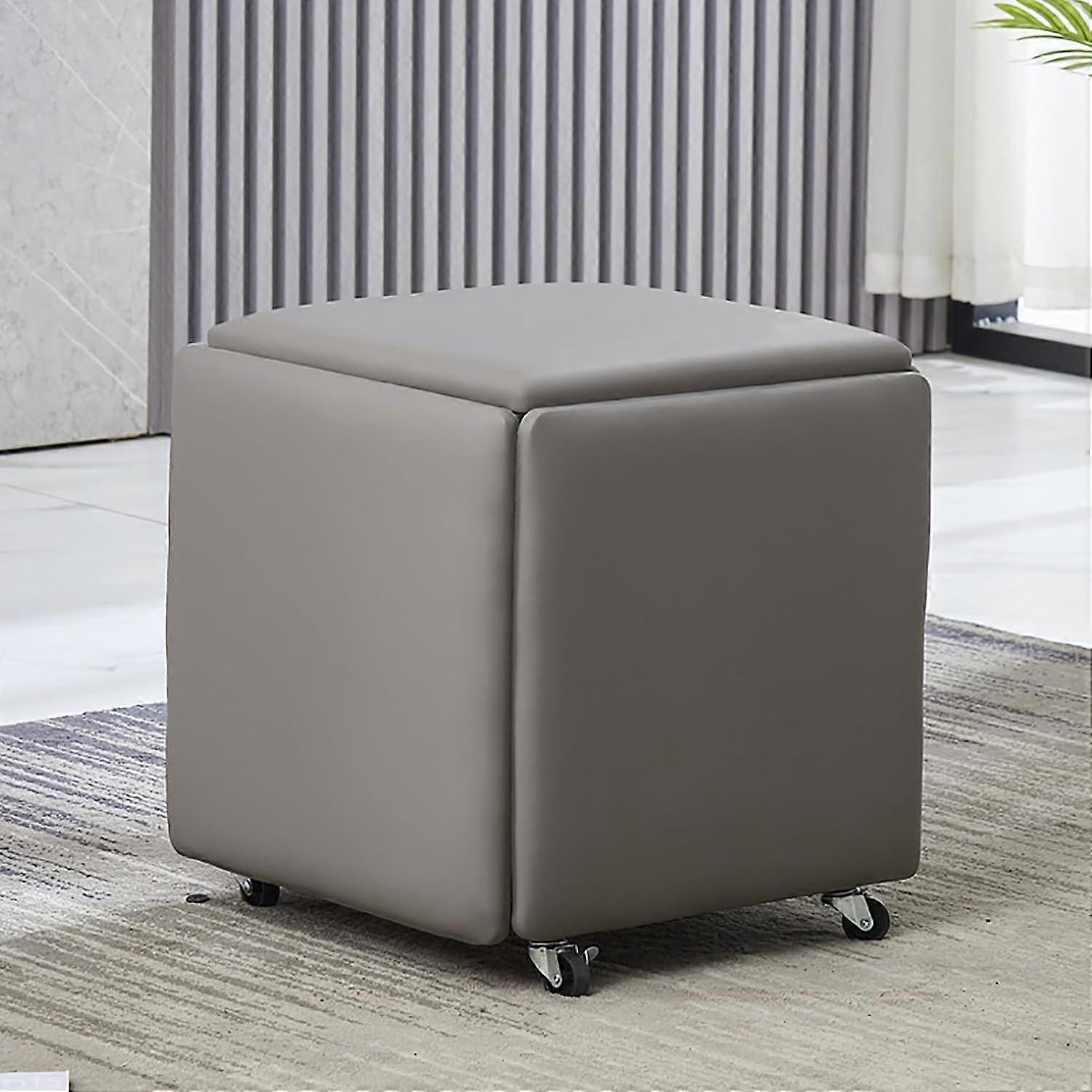 5in1 Nesting Ottoman Cube Stool Stackable PU Leather With Swivel Casters 18x18x19 Inch For Living Room And Dining Room