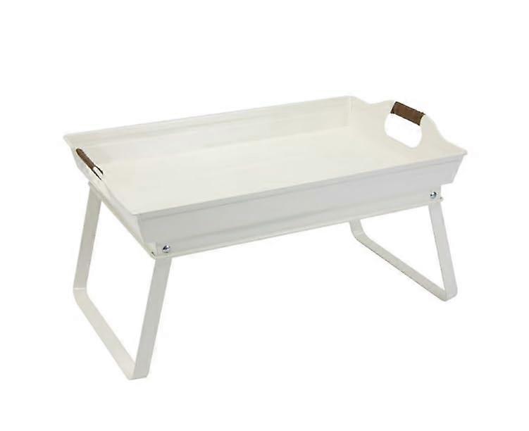 Foldable Bed Tray Table with Legs, Vanilla White Galvanized Steel, Large Indoor Outdoor Serving Tray