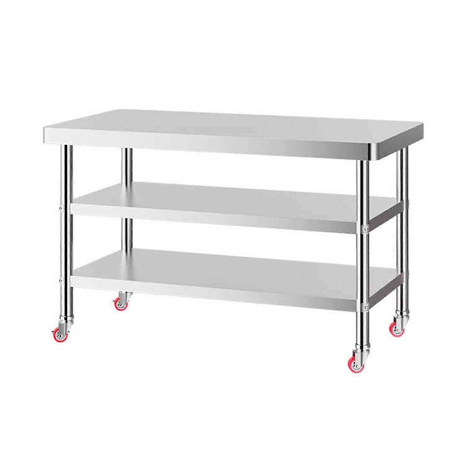 3Tier Stainless Steel Rolling Kitchen Prep Table With Wheels, 39.4x23.6x31.5in, 100x60x80cm, Commercial Work Table Durable Metal Shelving