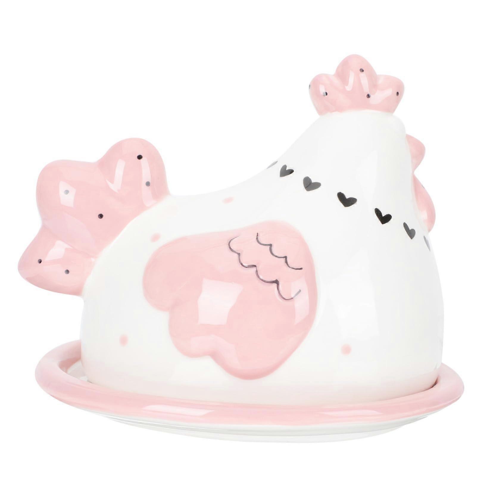 Butter Dish Ceramic Chicken Farmhouse Style Keeper with Lid, Cute Decorative Storage Box
