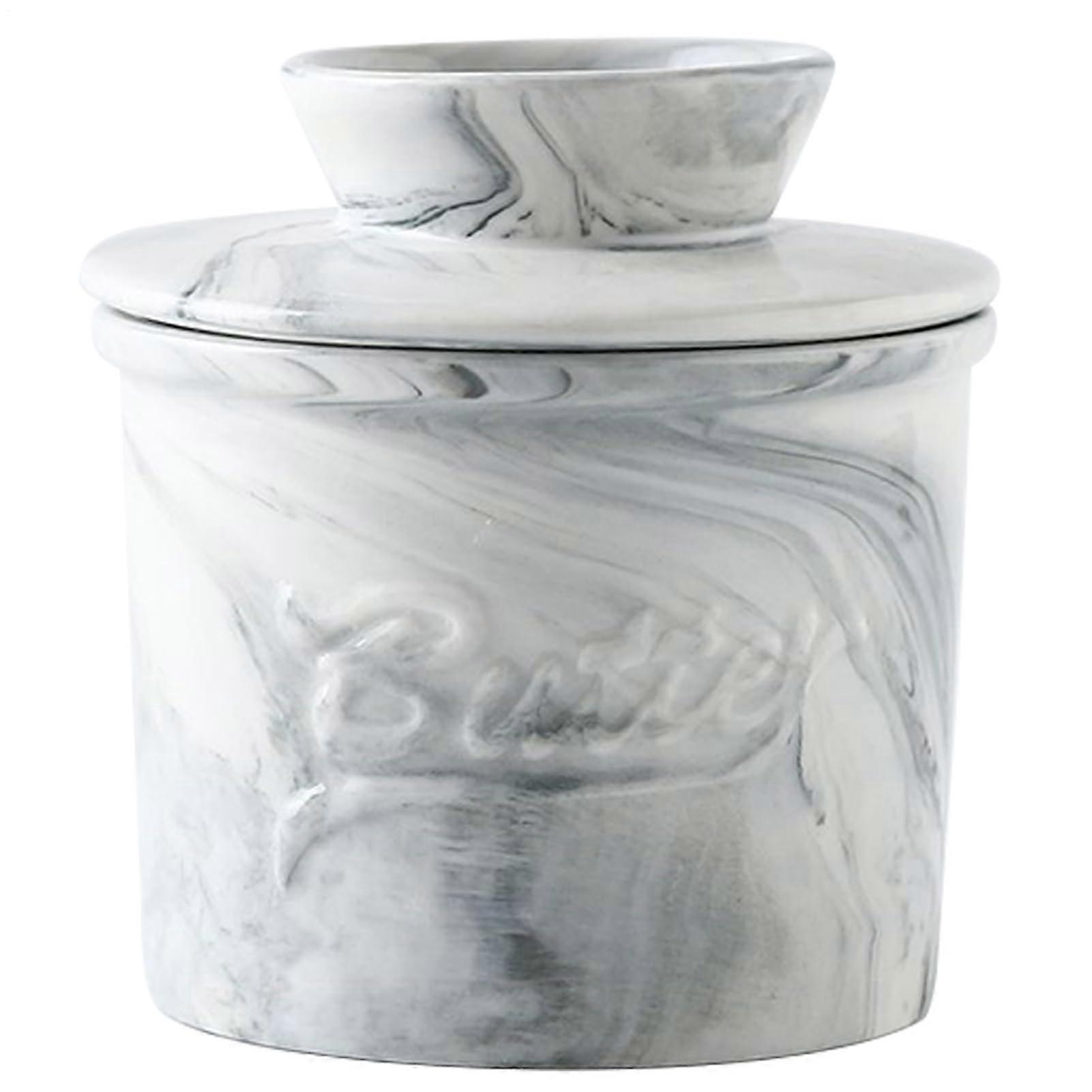 Butter Crock French Butter Keeper with Lid, Marble Ceramic Dish for Soft Spreadable Butter