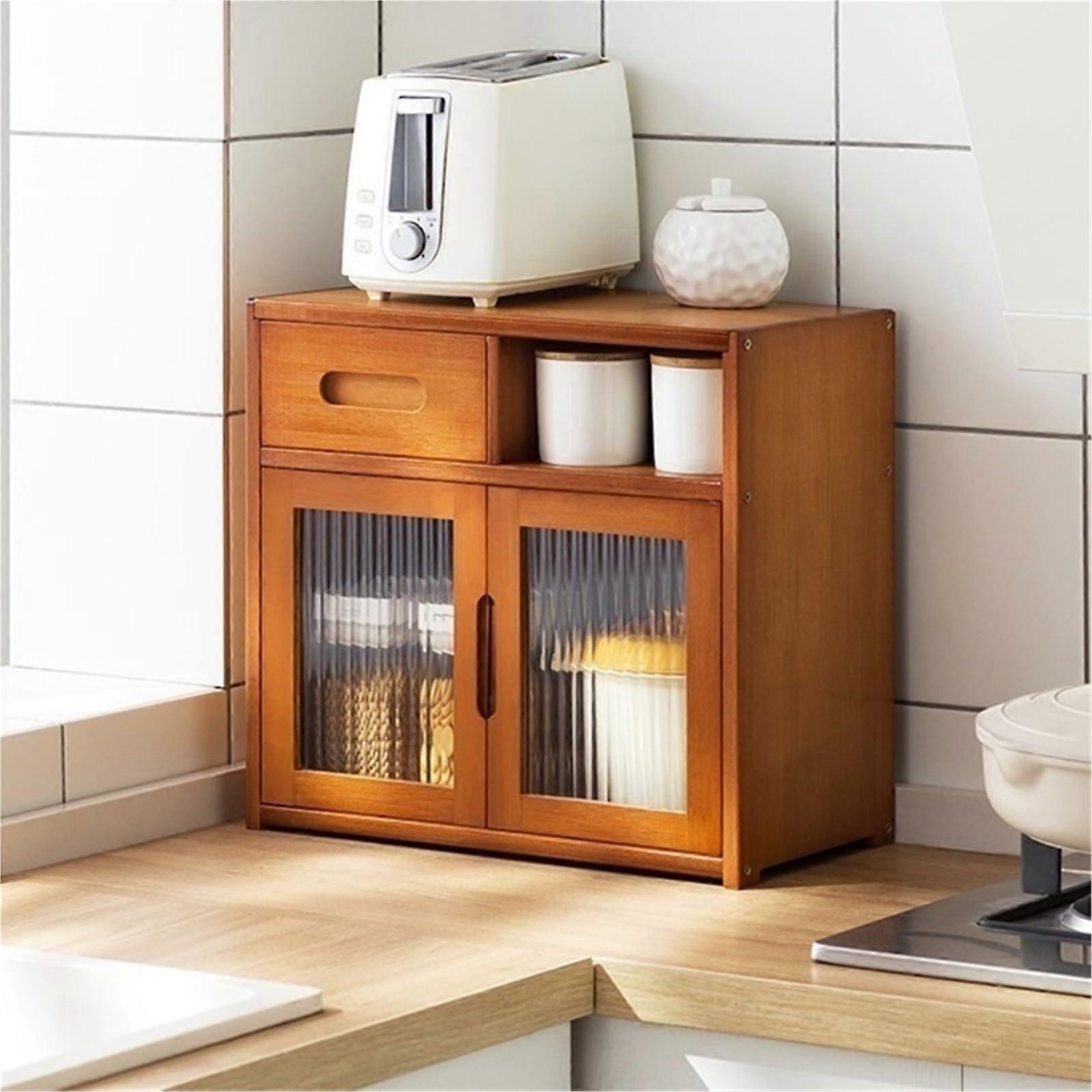 Bamboo Kitchen Countertop Organizer with Acrylic Door and Drawers, MultiTier Spice Rack Cabinet