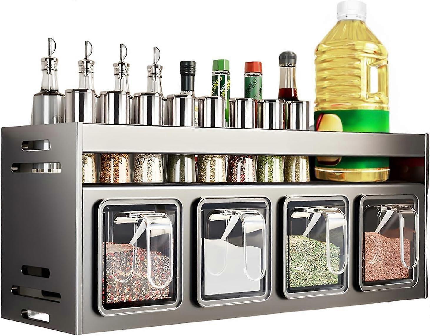Large Capacity and DoubleLayer Design Keep your kitchen organized and efficient with this spacious doublelayer spice rack. Available with 3, 4, or 5 condiment grids, it provides ample storage for spices, sauces, cans, beverages, or snacks. The widened countertop design maximizes space while maintaining a clean and tidy look. Suitable for both wallmounted and countertop use, it ensures your cooking essentials are always within easy reach, whether you are preparing daily meals or hosting guests. Quality Space Aluminum Crafted from quality space aluminum, this rack is waterproof, rustproof, and corrosionresistant, making it ideal for humid kitchen environments. A multilayer anodic oxidation finish prevents paint peeling and enhances durability. Compared to plastic or thin metal options, this sturdy construction delivers longterm organization without sacrificing style or strength. HeavyDuty LoadBearing Capacity Built to handle more, the upper shelf supports up to 20 pounds, while the entire rack can carry up to 80 pounds. The reinforced frame provides stability even when fully loaded with jars, bottles, cookware, or pantry items. Say goodbye to flimsy racks that bend or tip over—this design offers dependable support for daily use. Easy Punch Installation Install without drilling or wall damage using the included nonail glue system. Simply apply the adhesive, press into place, and let it set for a secure fit in minutes. The rack detaches easily for cleaning, preventing dust buildup and ensuring kitchen hygiene. This installation method is for renters, small kitchens, or those seeking a quick, stress setup. Practical Applications Ideal for keeping cooking spices and sauces organized on a busy kitchen counter. for storing beverages and snacks in a compact apartment kitchen. Convenient wallmounted solution for freeing up counter space in small or shared kitchens.
