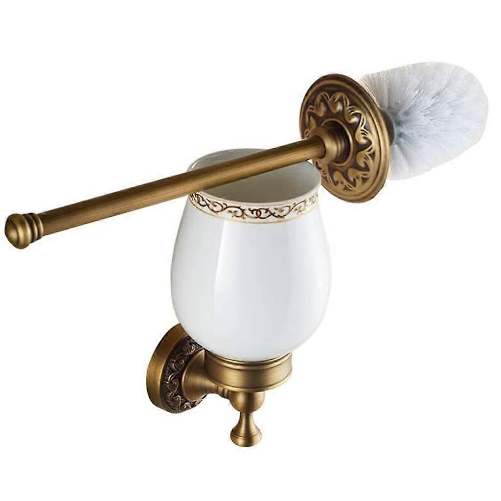 Toilet Brush Set with Ergonomic Comfort Grip and Wall Mounted Brass Ceramic Holder, 2 Pack
