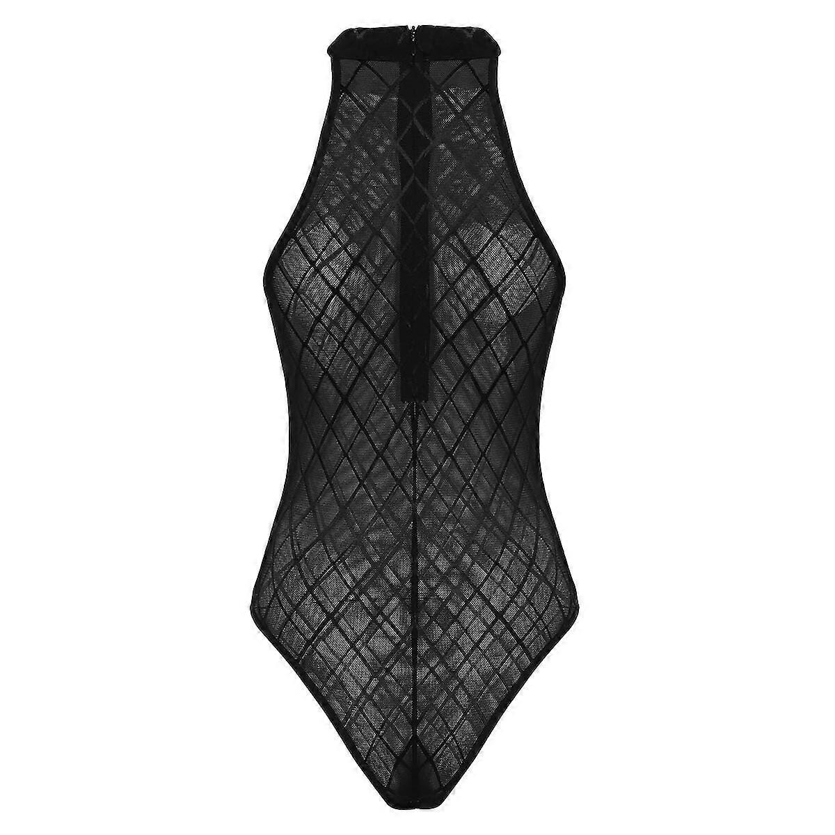 Women's See Through Mesh Leotard High Cut Bodysuit Crotchless Thongs Lingerie