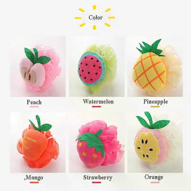 High-concerned chemical : None<br>Ingredient : -<br>Quantity : 1 pcs<br>Model Number : Bath sponge ball<br>NET WT : -<br>Item Type : Bath<br>Origin : Mainland China<br>Number of Pieces : One Unit<br>Category : Bath sponge<br>Color : Peach, watermelon, pineapple, mango, strawberry<br>Material : Polyethylene<br>Suitable comers : All crowd<br>Pattern : Fruit series<br>
