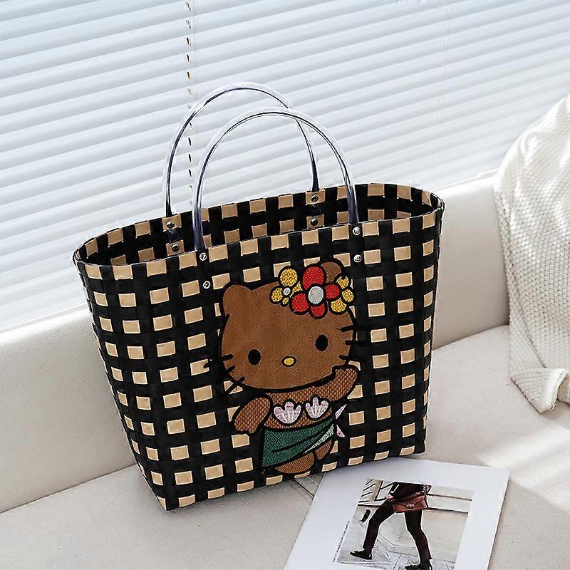 New Hawaii Kitty Cat Handwoven Bag Women'S Handbag Holiday Large-Capacity Waterproof Shoulder Bag Cartoon Embroidered Bag Gift