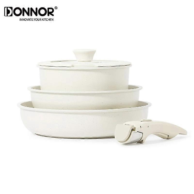 DONNOR 5PCS Kitchen Pots and Pans Set Safe Nonstick With Removable Handle Cookware Set Suitable For Fried Egg Pancakes Oven Safe