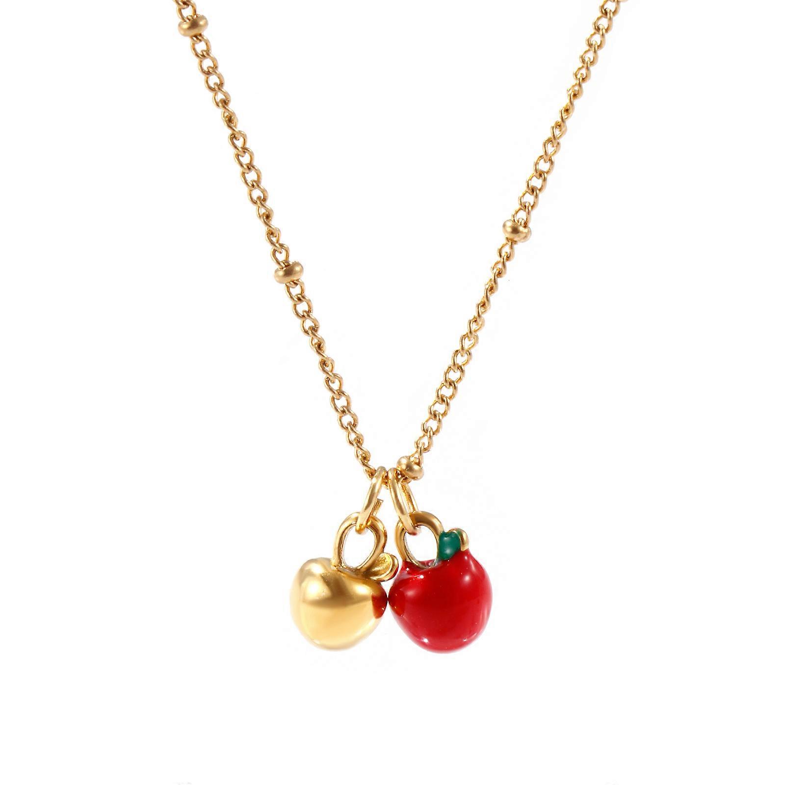1 Piece Cute 304 Stainless Steel Necklace 18K Real Gold Plated Red Fruit Enamel Apple Cherry Pendant Necklace For Women Gift