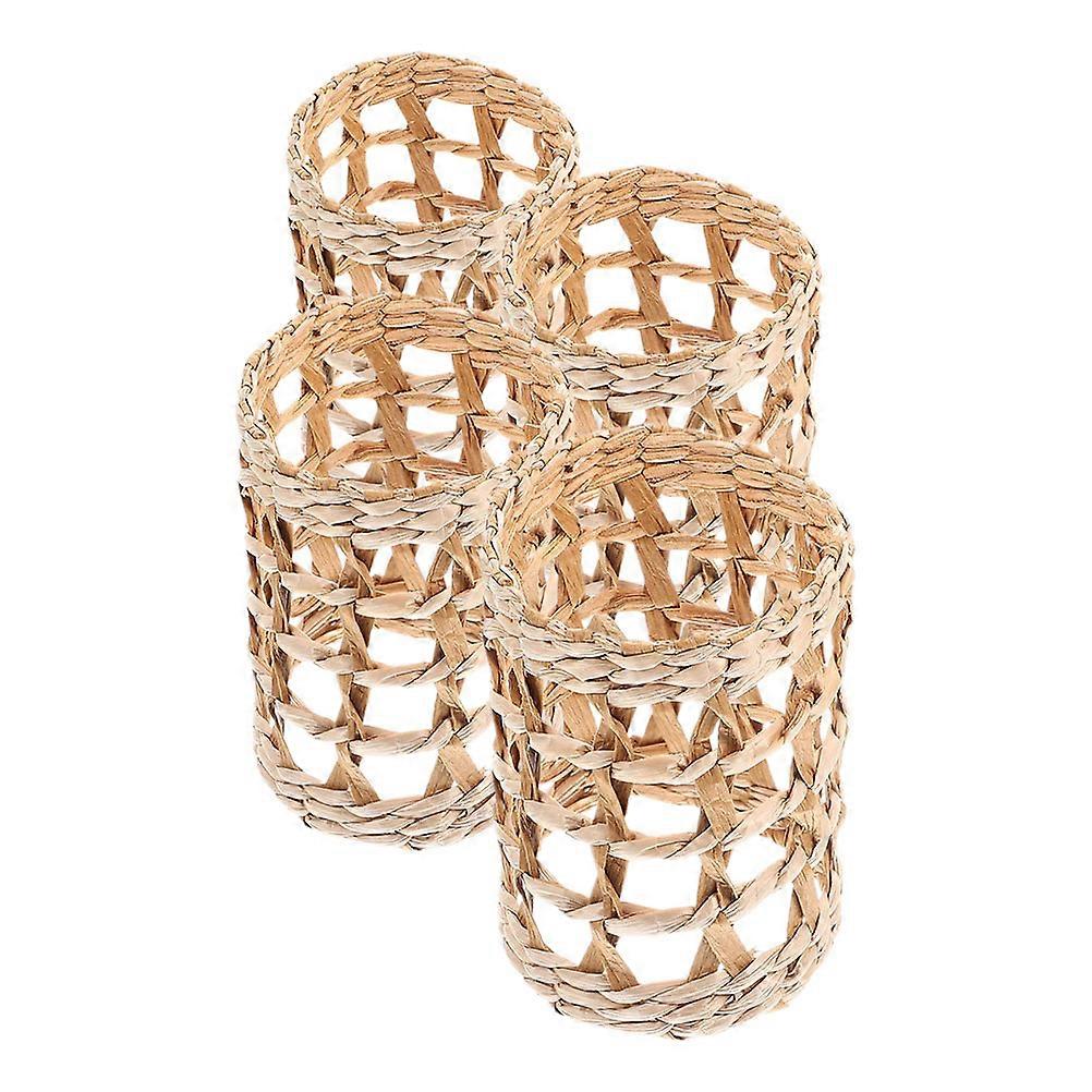 Woven Cup Sleeve Creative Straw Weaving Craft Temperature Insulation For Lotion Bottles Rustic Charm 4Pcs