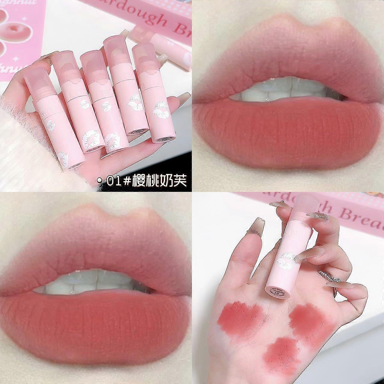 Matte Velvet Lip Mud Lipstick with Silicone Brush Dual-use Lip Glaze and Cheek Tint Long Lasting Waterproof Lips Makeup Cosmetic