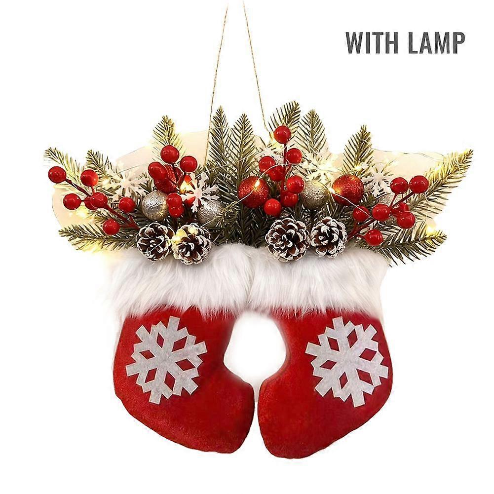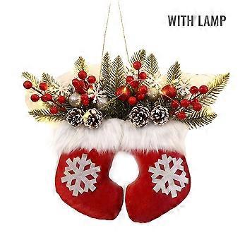 2025 Christmas Garland Creative Socks Shaped Simulated Flower Wreath Window Door Gate Decoration Door Sign Xmas Party Decoration