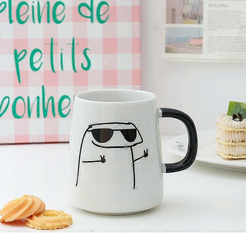 Household Ceramic Cup Korean New Cute Cartoon Abstract Funny Office Coffee Mugs Handle Creative White Simple Couple Water Cup