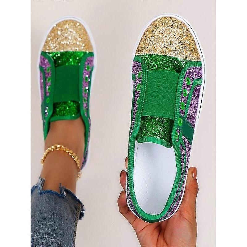 Women's Fashionable Glitter Decor Low Top Sneakers, 2024 New Style Casual Comfortable Round Toe Flat Shoes for Daily Wear, Female All-match