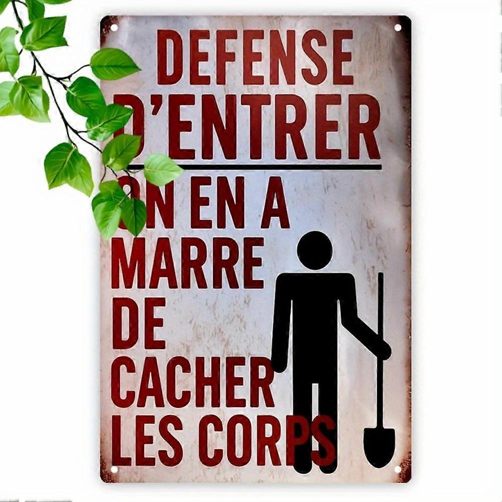 1pc 7.8x11.8 Inch 2D Flat French "Do Not Enter" Metal Wall Art - Humorous Vintage Iron Sign, Waterproof for Home/Garage/Kitchen