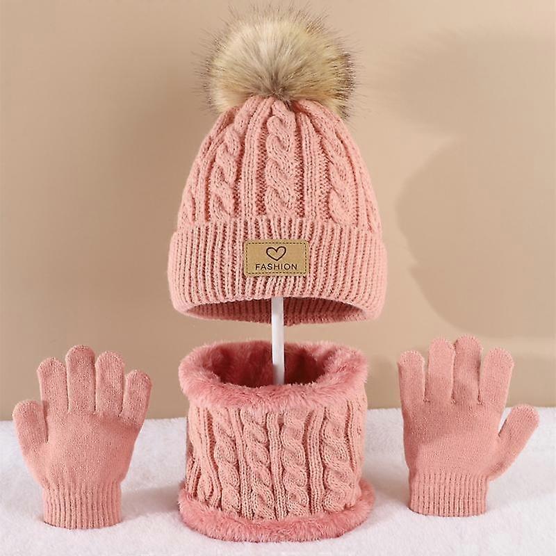 Toddler Kids Pom Pom Decor Beanie & Infinity Scarf & Gloves Boys Girls Winter Warm Suit
