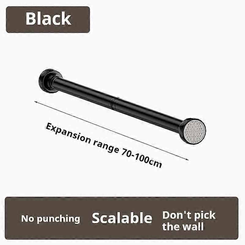 Black Non Drilling Shower Curtain Rod Spring Rotating Telescopic Wardrobe/Curtain Rod Extendable Anti Slip Stainless Steel Rod