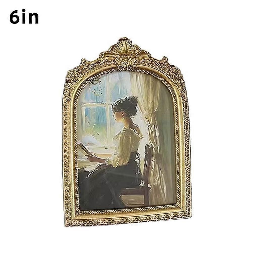 Resin Photo Frame Antique Arch Shaped Picture Frame Holder Gold Color Carved Embossed Decor Crafts Home Table Wall Hanging Decor