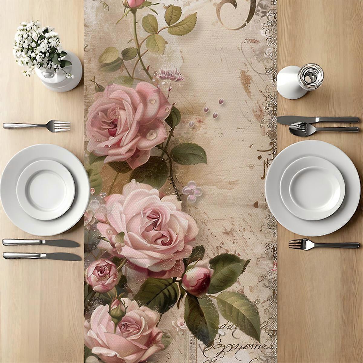 1pc Vintage Pink Rose Table Runner - Perfect Decor for Romantic Dinners, Ideal Small Gift for Wedding Anniversaries