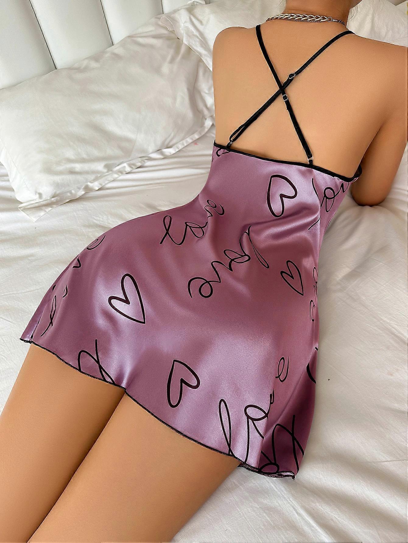 Heart Letter Print Nightdress Casual Round Neck Spaghetti Strap Sleep Dress Women's Sleepwear Dresses