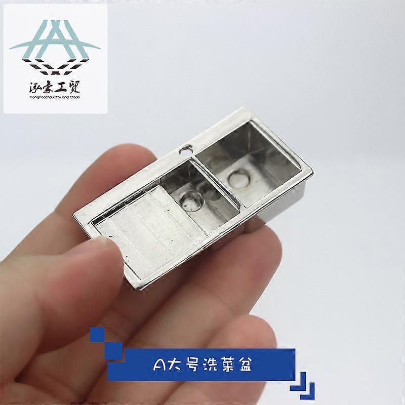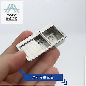 Dollhouse Miniature Simulation Faucet Diy Model Doll House Kitchen Accessories Stainless Steel Washbasins Double Sink Dish Toys