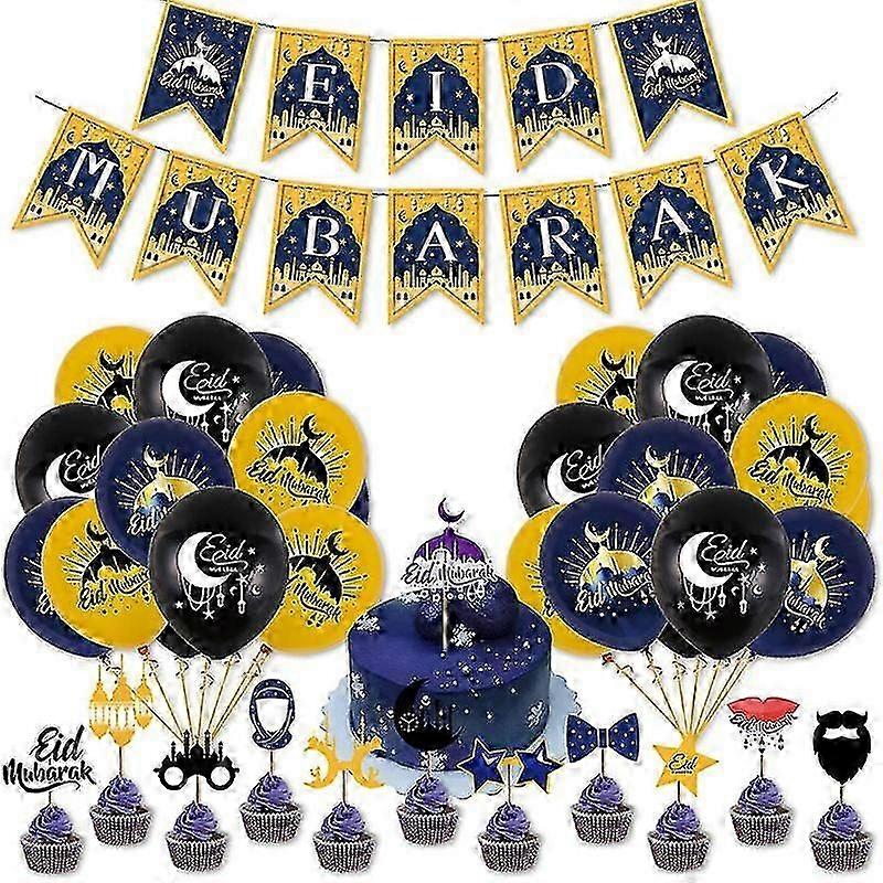 Ramadan Eid Mubarak Party Decoration Balloon Set with Pull Flag and Cake Card
